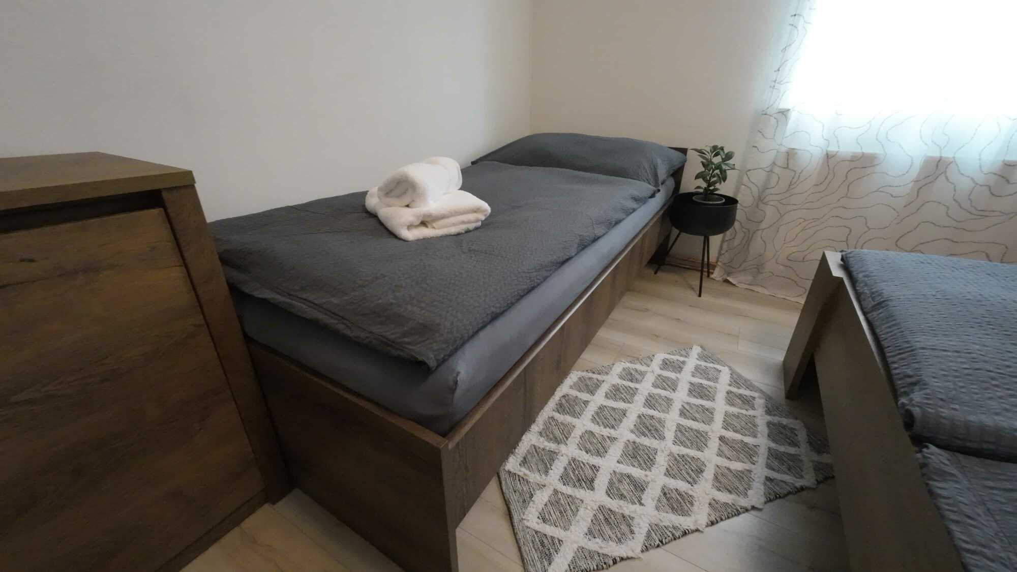 Rodinný apartmán, který nabízí dvě oddělené ložnice vlastní kuchyň a koupelnu. Dvě manželské postele a jednu postel standartní dále je zde také rozkládací gauč. Vše je nově vybaveno a připraveno na vaši návštěvu. K dispozici je také dětská rozkládací postýlka, dětská židličky a vanička na koupání.